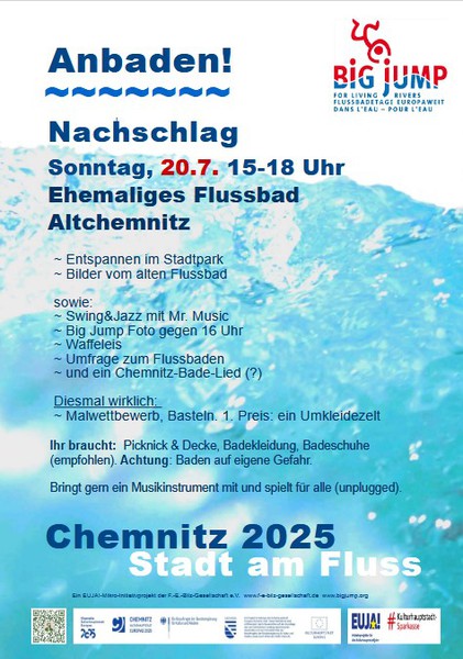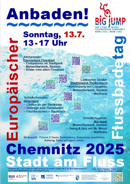 13.7.25 Stadtteilpark Pleissenbach, Helgoland, Nordpark. 20.7.25 ehem. Flussbad Altchemnitz, 27.7.25 Chemnitztal bei Stein / "kleine schweiz"